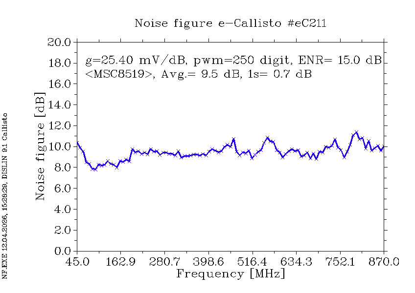 | 7th series of Callisto spectrometer based on Philips CD1316LS/IV-3. LO-quartz crystal 25.43 MHz, Firmware V1.8. For PC software go for version V116 or higher (HW manufactured by Thomas Lanz), 14.05.2014 | ||||||||