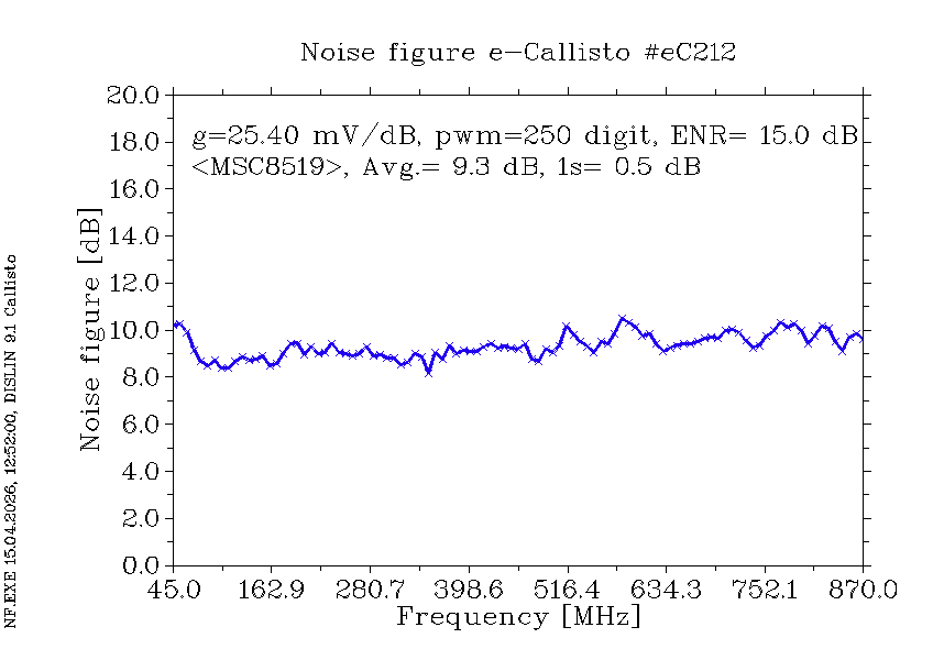 | eC212 | plot at AGC=80pwm | sfdr | NF | Sens | plot vs frequency | plot vs integration time at 610.0 MHz | 253mA/12V | Storage @ HB9SCT, 2026-04-15 |