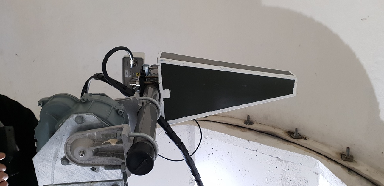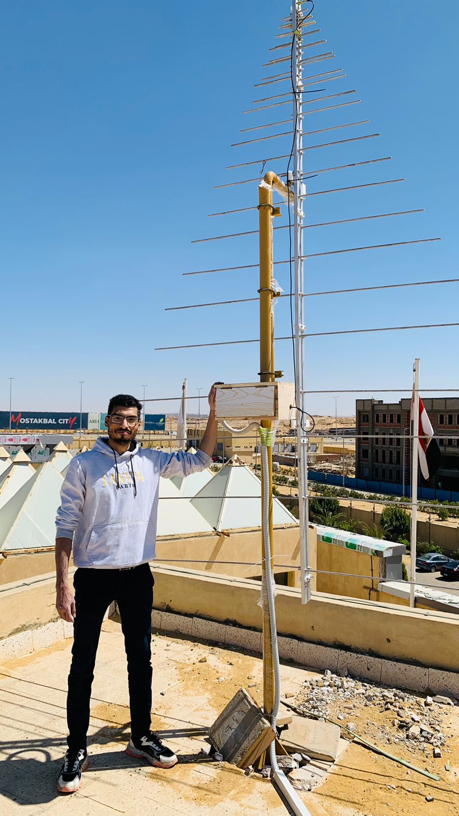 Logarithmic periodic dipole antenna LPDA at Egyptian Space Agency (EgSA) Address: Kilo 6 Middle Ring Road, 5th settlement, Cairo, Egypt. Operated by: Dr. Amira Hamdy Hussein File-ID = EGYPT-SpaceAgency |