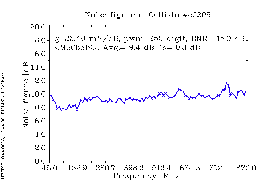 | eC209 | plot at AGC=80pwm | sfdr | NF | Sens | plot vs frequency | plot vs integration time at 610.0 MHz | 246mA/12V | Storage @ HB9SCT, 2026-04-12 |