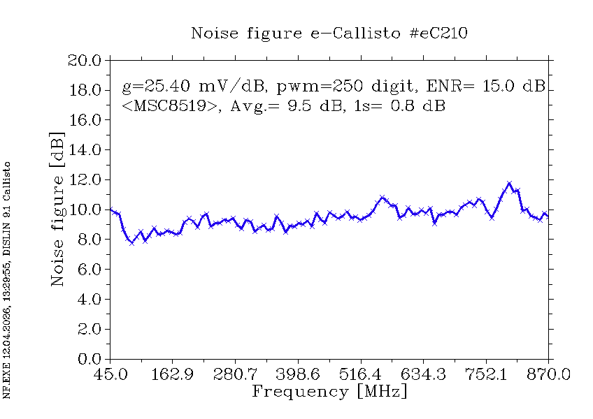 | eC210 | plot at AGC=80pwm | sfdr | NF | Sens | plot vs frequency | plot vs integration time at 610.0 MHz | 254mA/12V | Storage @ HB9SCT, 2026-04-12 |