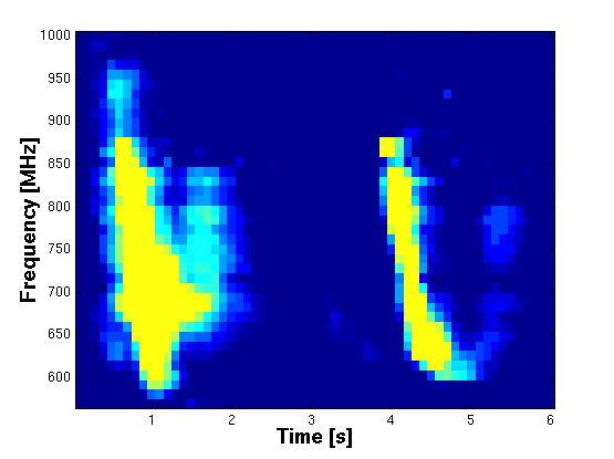 between 579-1020 MHz, with 8 ms total integration time per pixel.