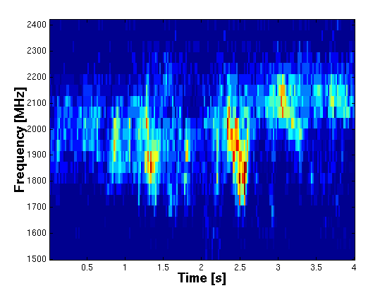 The spectrum was recorded on 1998/10/13, 09:37:05 - 09:37:09 UT, between 1000-1756 MHz, with a total integration time of 2.5 ms per pixel. A threshold at 2 sfu above background was subtracted. Both tempered pentatonic and proportional frequency mapping are provided, the note duration is 0.1 s.