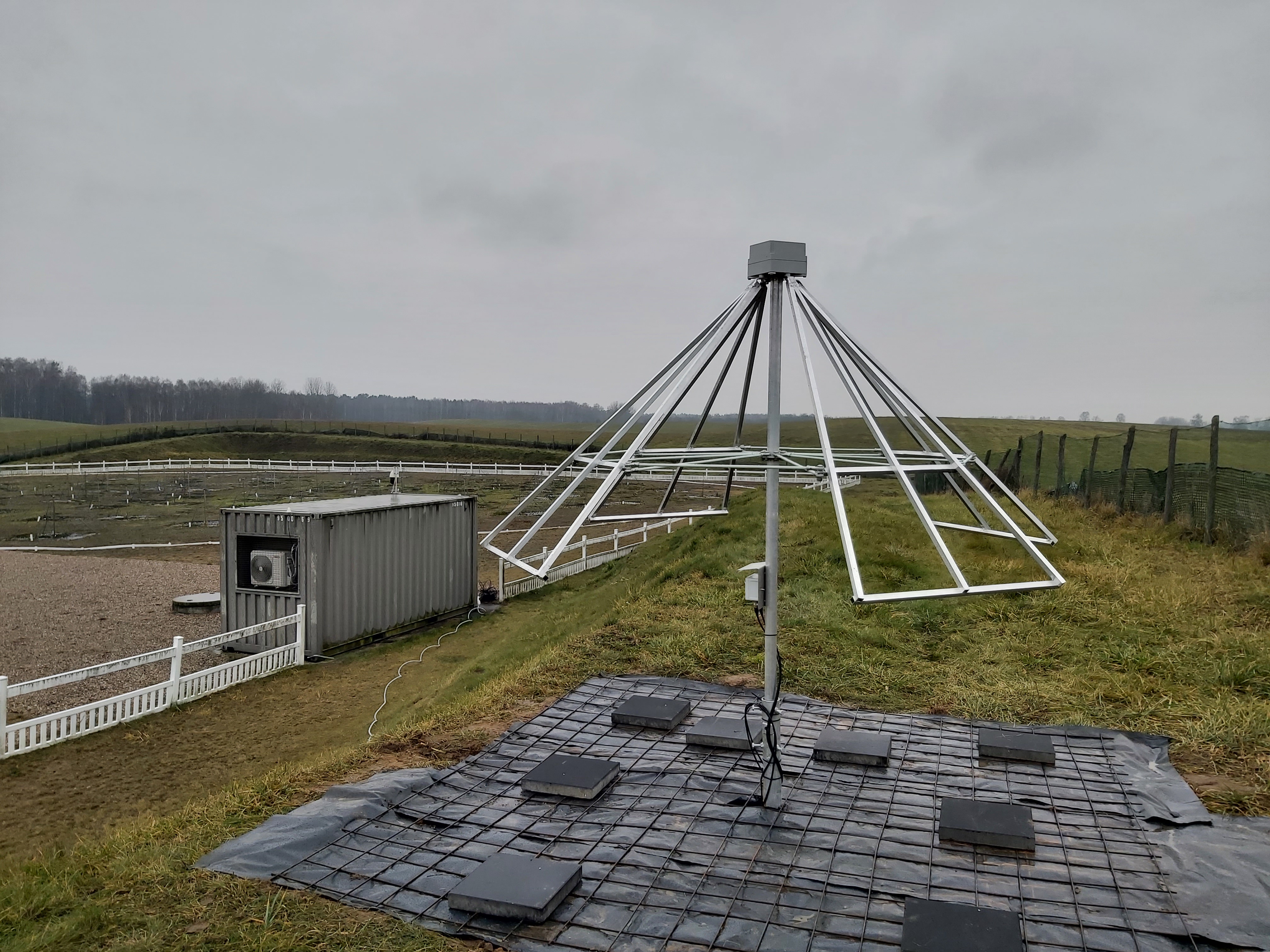Strassolt Astronomical Observatory LPDA CLP-5130-1N covering ~230 - ~380 MHz in vertical polarzation. Fixed in elevation, pointing to the average meridian transit of the Sun. Operated by: Elio Fior and Dr. Alessandro Marassi File-ID = ITALY-Strassolt |